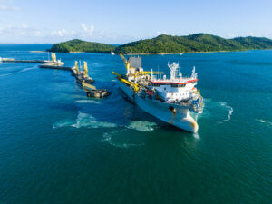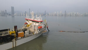 Contudo, muito além da importação de ativos físicos, a Jan De Nul do Brasil se destaca na “importação” de conhecimento e expertise. Um exemplo emblemático e recente é a pioneira obra de aprofundamento do canal de acesso externo ao Porto de São Francisco do Sul, associada à intervenção de proteção costeira no município de Itapoá (SC).